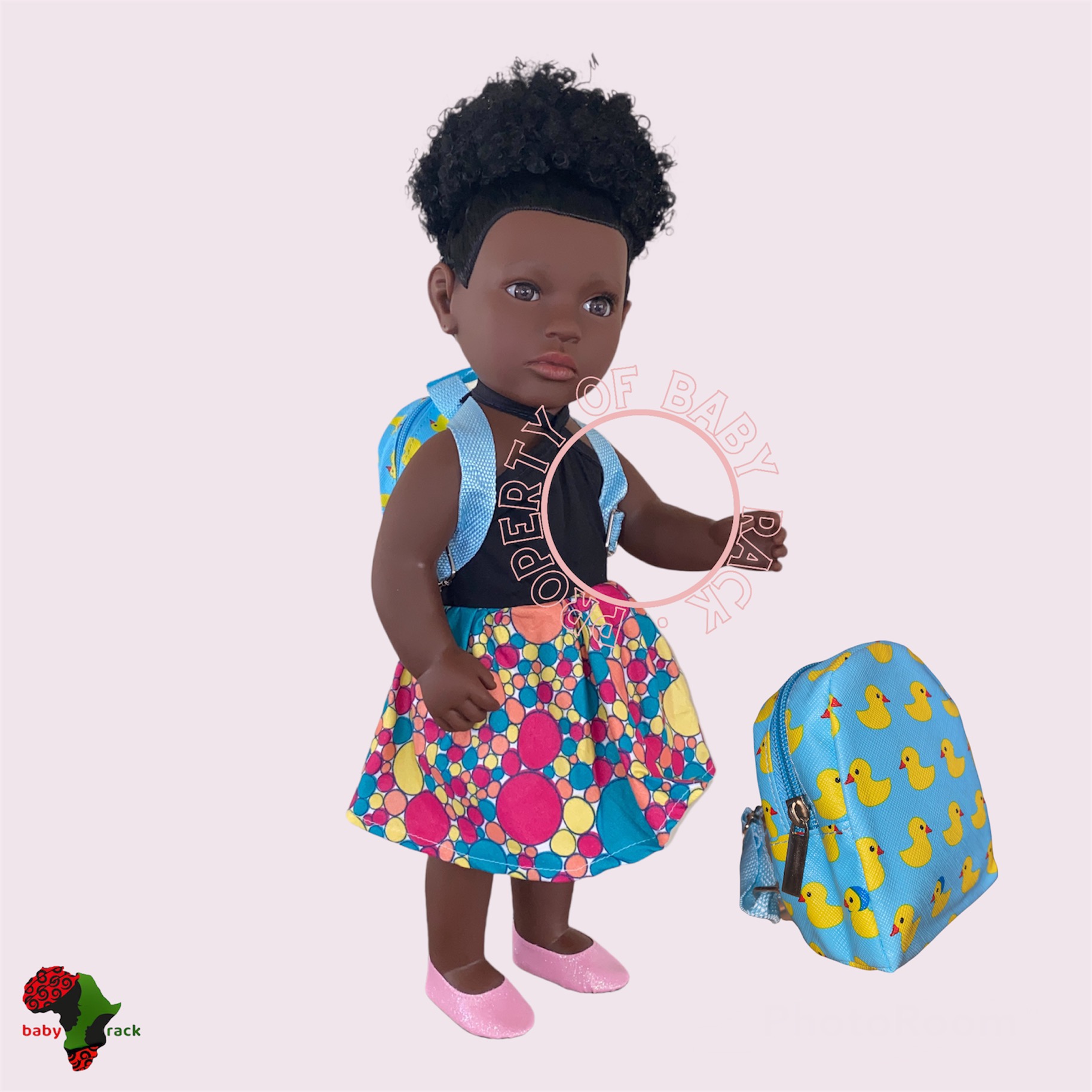 Meet Mocha, the ultimate cuddly companion that brings warmth and joy to every child. Her soft, rich skin tone and charming smile make her a perfect friend for adventures big and small. Mocha’s versatile wardrobe, centered around a vibrant purple theme, ensures she’s ready for playtime, rain or shine.